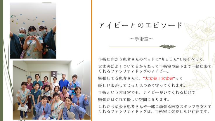 本日から、本プロジェクトへの思いやファシリティドッグの紹介等について、看護部の各部署からのメッセージリレーを開始します。