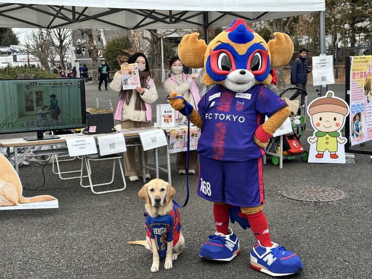 2/22(土)FC東京のホーム開幕戦(FC東京 vs FC町田ゼルビア@味の素スタジアム青赤広場)にてブースを設置し、ファシリティドッグの活動を紹介するとともに、ファシリティドッグ2チーム目導入のためのクラウドファンディングのご寄付を受け付けられるブースを設置しました。