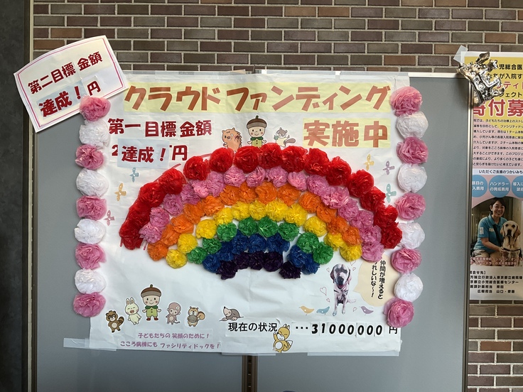 現在当院外来付近に設置しております、特設ブースの後ろには目標金額の達成度を表現する虹がかかっております。