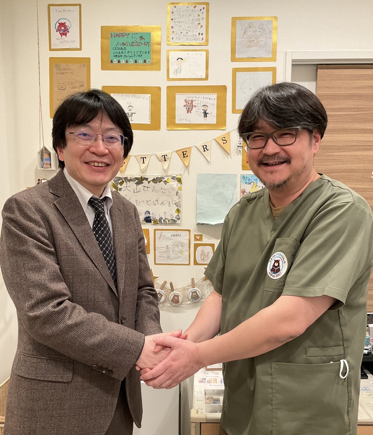 このたび、くまさんこどもクリニックから、当院のクラウドファンディングに大きなご寄付をいただきました。そこで先日、当院の山岸院長がくまさんこどもクリニックへお伺いし、大山院長へ大きなご寄付への感謝と、このプロジェクトへの想いをお伝えしました。大山院長からは、当院の活動について激励をいただきました。