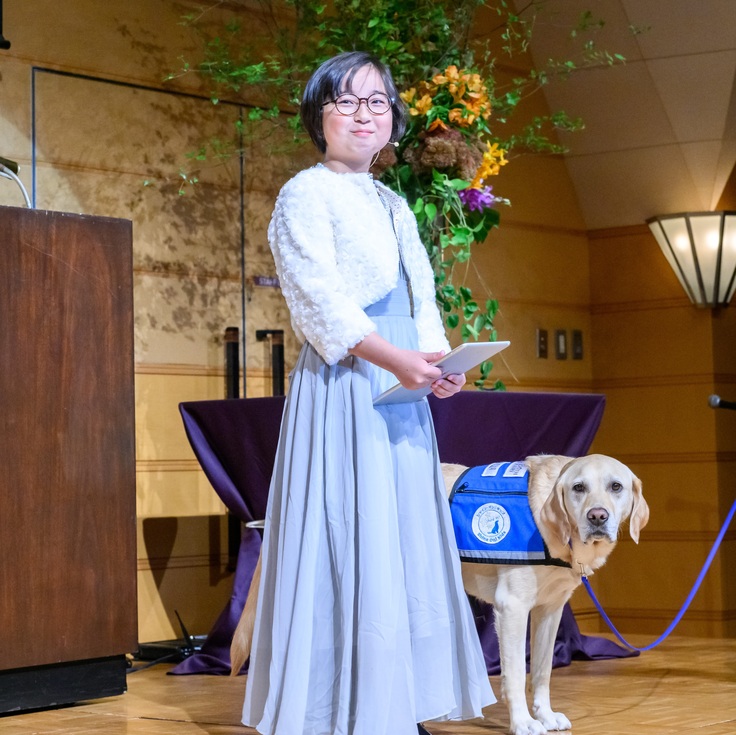 当院に入院歴があり、入院中にファシリティドックのアイビーとお友達になった女の子とご家族がアイビーとのエピソードについて、シャインオンキッズ様が主催する会でスピーチをされる機会がありましたので、紹介させていただきます。