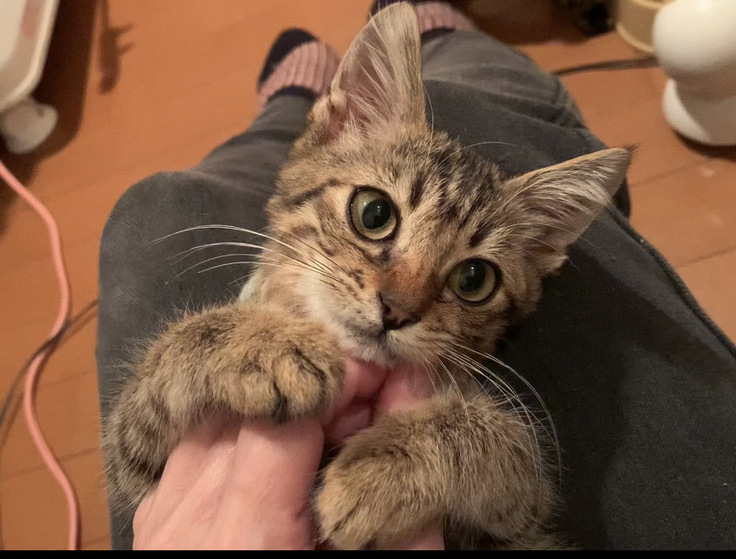 山の中で母猫と一緒にいた子猫。風邪ひきで保護しました。