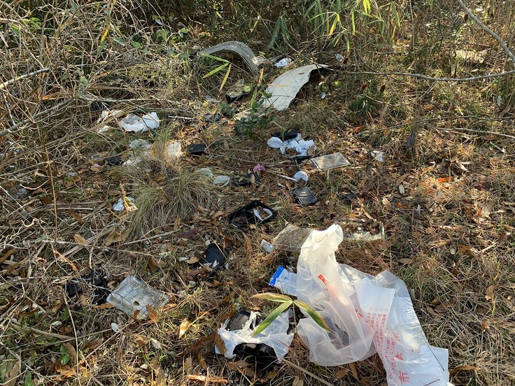 お弁当の入れ物がたくさん・・。通りすがりに猫にあげたのか・・、ただゴミを捨てたのか・・