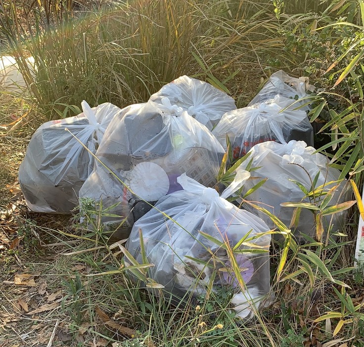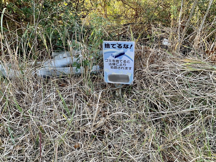 「捨てるな!」の看板が雑草に覆われて隠れていたので、草刈りもしました!
