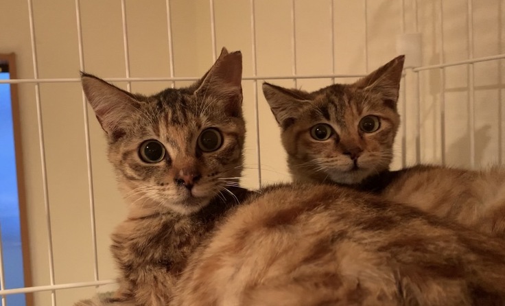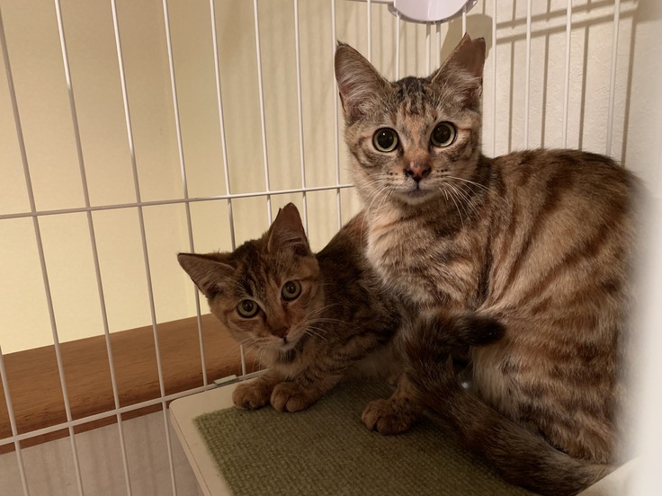最後の写真ではわかりづらいですが、黄色寄りの茶色。キジトラの姉妹です。