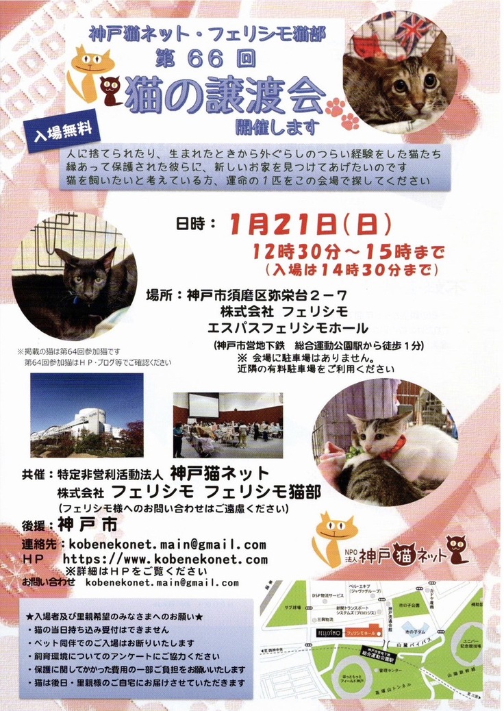 神戸市須磨区で開催された神戸猫ネット・フェリシモ主催の「第66回猫の譲渡会」に
