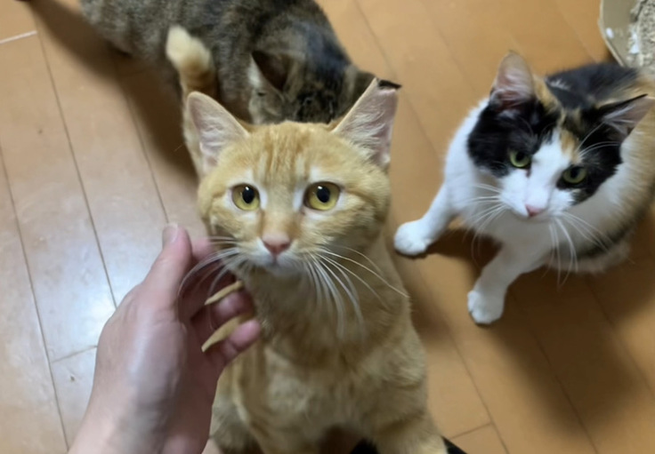 餌やりさんのお話ではその3日前から姿を見せ始めて、まだ先輩猫ちゃん達が怖くてしっかりご飯を食べられていないとの事でした。