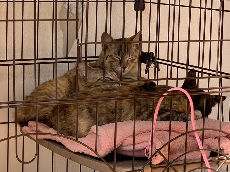 今は保護部屋でフリーにしていますが、いつもくっついて寝ている2匹