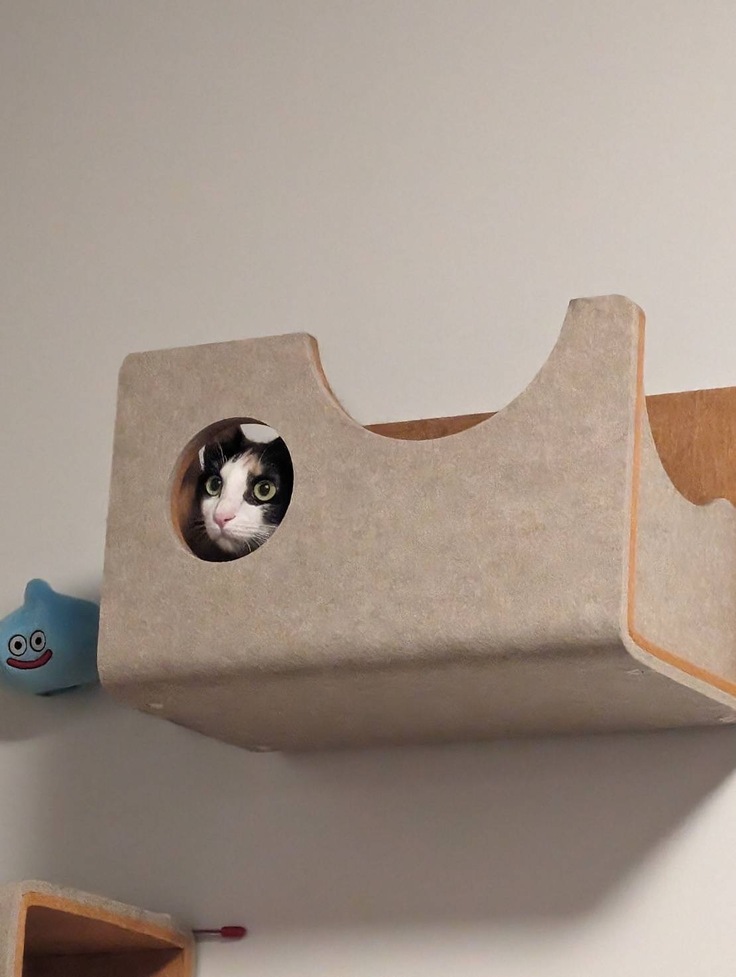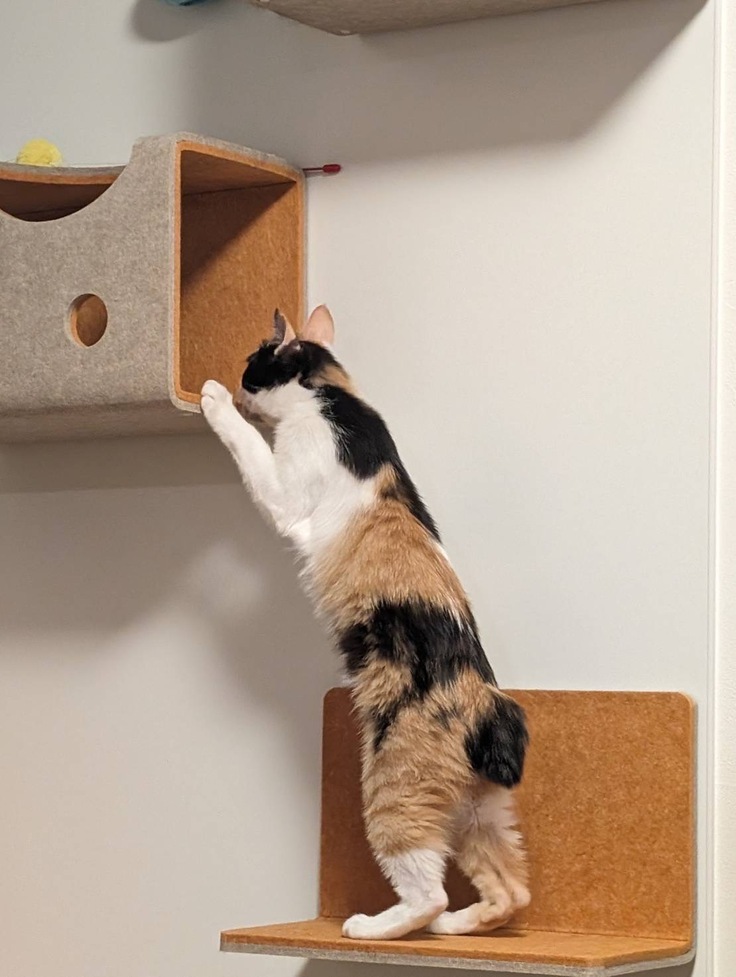 ヨルちゃんのマネをして、壁のステップにも上がれています!