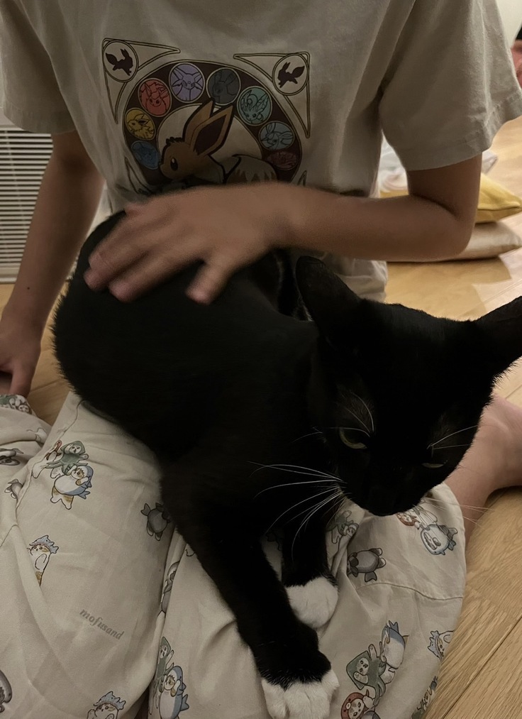小学生のお姉ちゃんのお膝に乗って甘えるタビちゃん(*^^*)