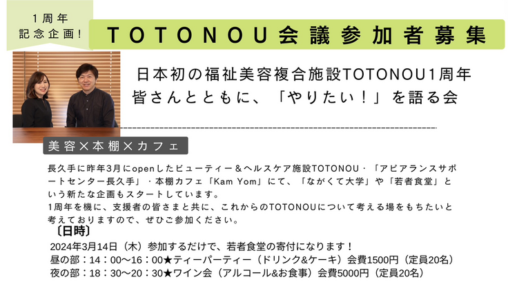 TOTONOUは日本初の福祉美容複合施設としてOPENし、3月をもちまして1周年を迎えることになりました。