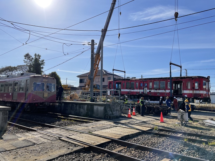 今年12月25日、デハ1002号(2040号)は2台の大きなクレーンで吊り上げられ、65年間走り続けたレールを離れ、人々を支える鉄道車両として全ての使命を終えました。