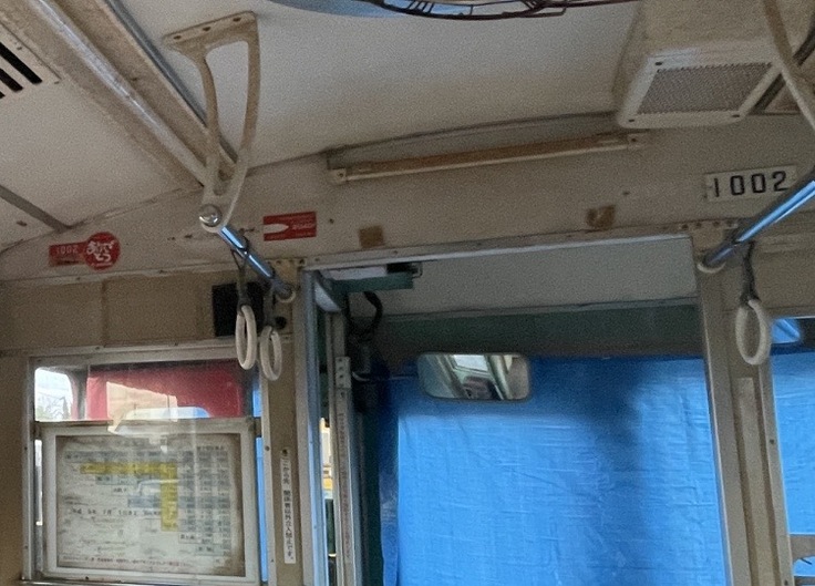 1002号の引退時に、車内に掲出された車歴説明板プレートです。