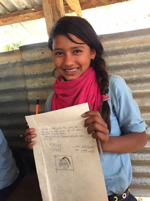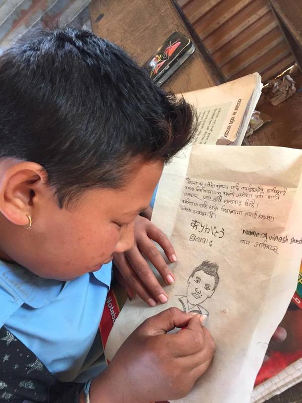どうですか?ネパールのハンドメイド和紙に一人一人が手書きで、そして自分がどんな人か届いた方へイメージが伝わるように皆真剣に照れながら書いてくれたいました。 本当に嬉しくって感動しました。《ありがとう》の文字、初めて覚えた日本語です。