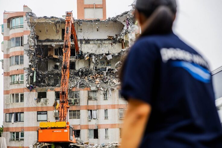 台湾地震で最も大きな被害を受けた花蓮市。130世帯が住んでいたという集合住宅の壁面は大きくひび割れ、風の強かった4月30日には現地視察中に外壁の一部が落ちてくるなど危険な状態です。