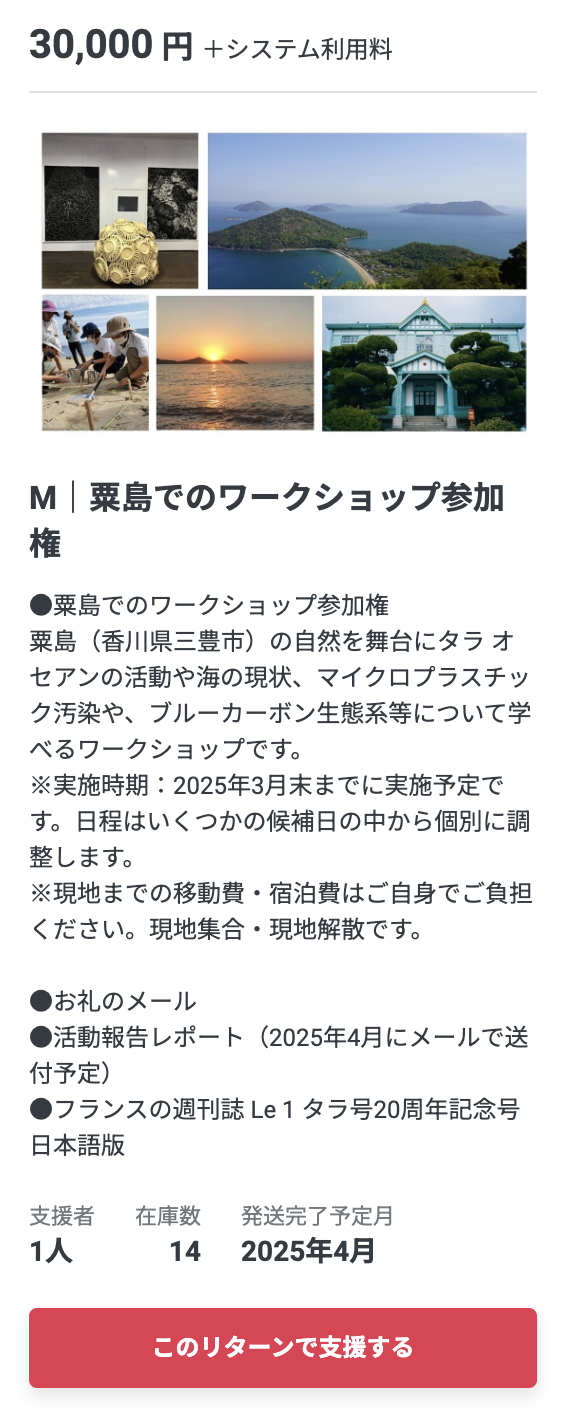 次に、今回はリターンの中から粟島でのワークショップについてご紹介します。