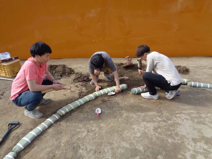 5月下旬、東京大学大学院への留学生が館山にて日本文化に触れる体験を計画していましたが、悪天候などにより中止。 その変わりに、東京大学大学院新領域創成科学研究科 社会文化環境学専攻 岡部明子研究室の学生が土俵づくりを体験。岡部先生や研究室の学生さんとは、同じ地区にあるNPO法人ゴンジロウでの活動などから連携をしております。