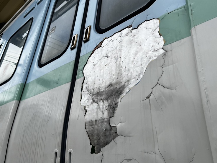 今回クラウドファンディング達成後の修繕は、 外板は現在の塗装を全剥離し、下地処理からやり直しを行います。また、腐食箇所の修繕はもちろんのこと、 裾部分(ドアレールより下)の外板は全て取り替えます。