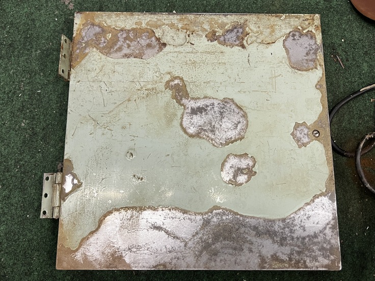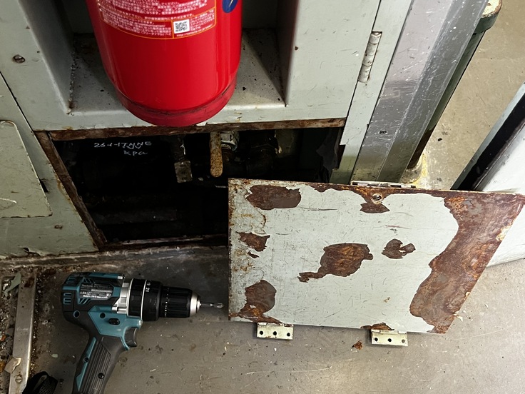 また、貫通扉のすぐ手前の点検蓋は腐食が酷い状態でした。