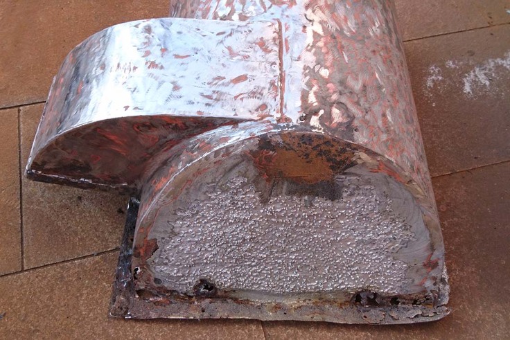 これが非常に大変な作業で、面積も大きいのですが、綺麗に取り切ると錆劣化はほぼ皆無になり、飛躍的に露天展示が長持ちする可能性が高いです。