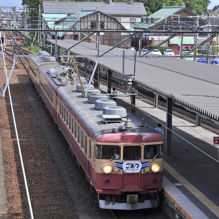 過去に企画の475系、457系国鉄色を用いた地域PR型団体列車では、北陸の鉄道近代化に貢献した国鉄時代の急行マークの意匠を尊重したマークで運行。2022年現在は、直江津のSLレールパーク内に展示中。