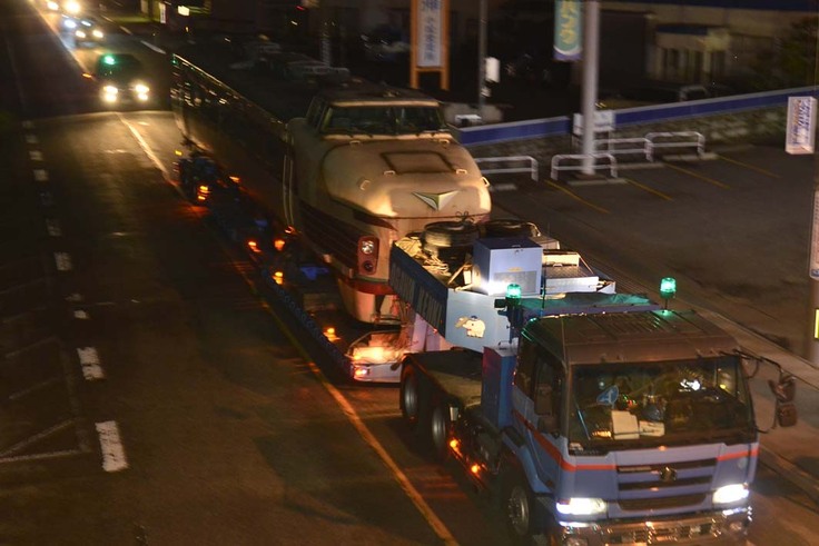 トレーラーで小松に陸送した際のクハ489-501の屋根には、ヘッドライトはありませんでした。北陸本線の高架下を通過する際の支障になったために撤去したのです。181系も最終の100番台やクハ180の新製車には、中央本線のトンネル通過の支障となるため屋根のヘッドライトは省略されました、そのまま485系に改造された九州時代も181系の面影が強く残っていました。