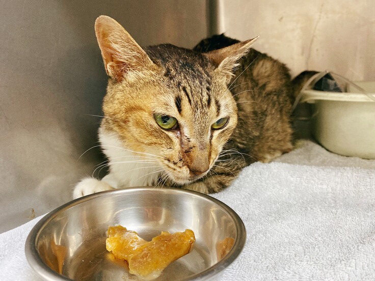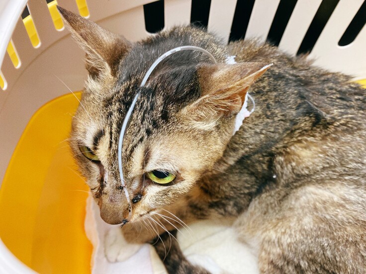 そんな中、ノラの食欲が落ち受診したところ、喉の奥が炎症していてご飯を飲み込むと痛みがあるとのこと。。