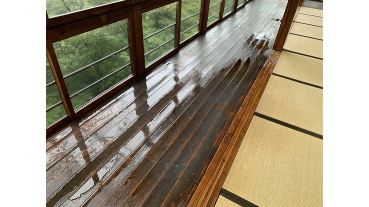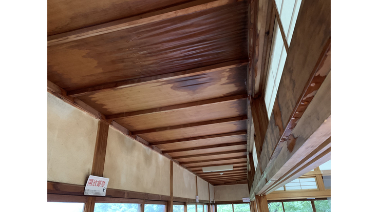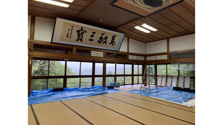 Unfortunately, the Great Lecture Hall is now in dire need of repairs. Six years ago, its roof began to leak due to widespread corrosion of the corrugated metal panels that date to its initial construction in 1967. Although these leaks have been a continuing problem that has grown gradually worse over time, the situation changed drastically when a typhoon struck Wakayama and southern Nara prefectures (where Yoshino is located) on August 14th and 15th of this year. This storm, which dumped almost a month’s worth of precipitation on the temple in the span a single night, caused severe damage to the interior ceilings, plastered walls, and tatami-mat floor.