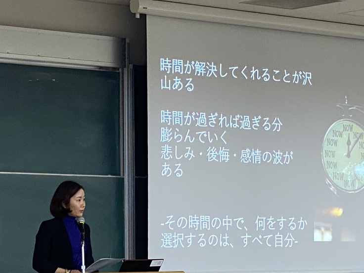 2週目の講義では、全員が必ずいずれ経験する、身近な家族や友人・パートナーという、大切な人の「死」とどう向き合い、どう「今」をとらえていくか、を経験からお伝えする内容です。