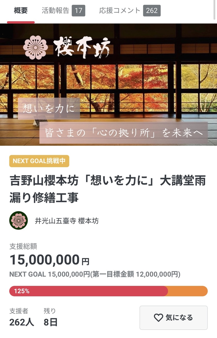 11月1日にスタートした本プロジェクトは、大変ありがたいことに、11月28日には第一目標であった1200万円を、12月17日には、第二目標であった1500万円を達成させていただけました。幅広い層の皆さまからのご寄付と、何より心あたたまるお言葉を沢山頂いておりますこと、心から深く感謝申し上げます。