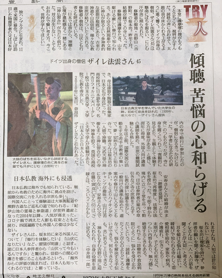 本日1月11日 讀賣新聞 奈良版にて、櫻本坊をご紹介頂きました✨
