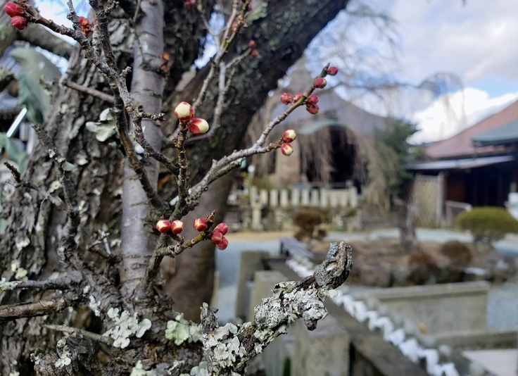 境内の梅が開花し始めました!