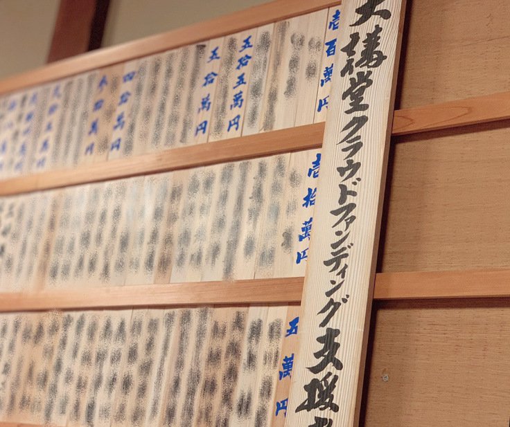 令和5年11月1日~12月25日に募集致しましたクラウドファンディング、期間中にご寄付下さった支援者様のご芳名を、リターンのひとつ「寺内掲示木板にてご芳名掲示」として、掲示させて頂きました✨