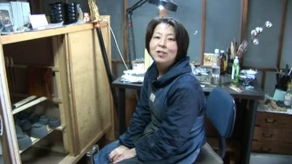 This woman was the wife of the husband who carved wood. She seemed quite happy/.They had both just moved to Inami from