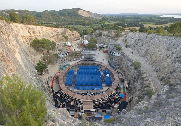 広大な南仏の自然、切り立った崖に包まれた石切り場の廃墟での『マハーバーラタ』(2014年 SPAC 宮城聰演出)