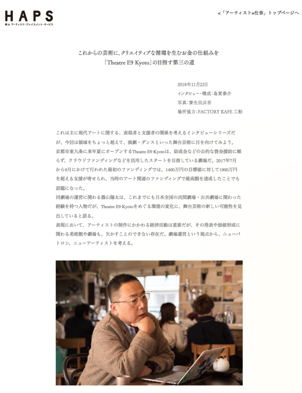 《これからの芸術に、クリエイティブな循環を生むお金の仕組みを 「Theatre E9 Kyoto」の目指す第三の道》