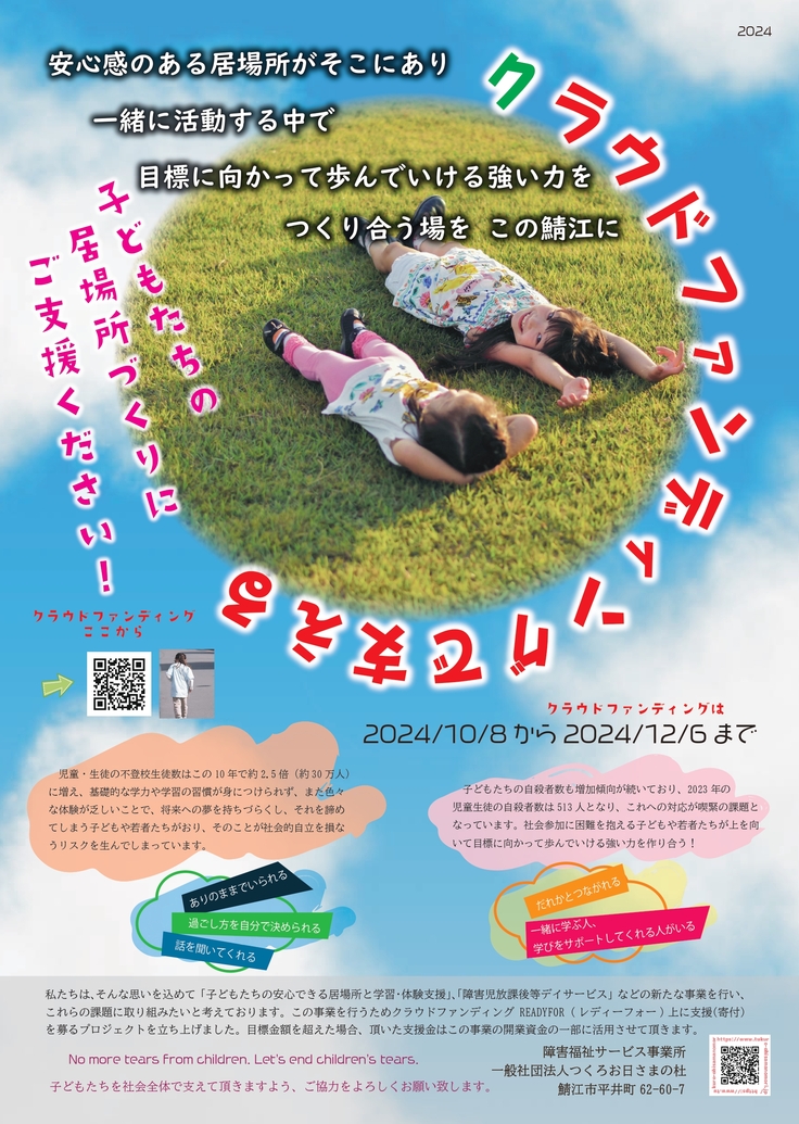 キャッチフレーズは「クラウドファンディングで支える・子どもたちの居場所づくりにご支援ください!」