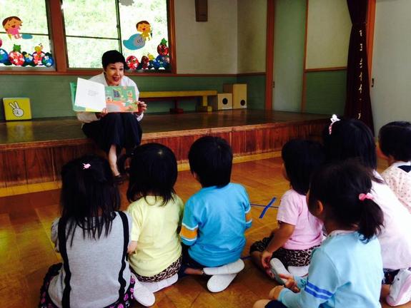 (大船渡市の保育園の園児と「おばちゃんと英語で遊ぼう」を)