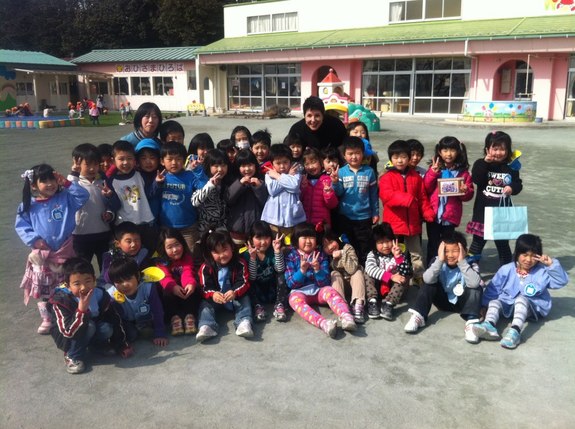 多くの問題が残っている被災地で、一番気になるのが子供達の成長です。感情を表に出せない子供達にこの震災のトラウマはどういう影響をもたらすのでしょうか。震災直後から毎月保育園に一ヶ月に一回は行っています。そこで遊びを通して笑い、はしゃぎまわる事で楽しい生活を取り戻そう。このような活動を2011年4月から行っています。