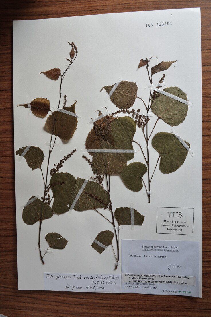 押し葉標本なんて前世紀の遺物、と思っていませんか?古くに作られた標本は、確かに「前世紀」のものです。しかしそれは古くさくて価値のないものではありません。それはそれが作られた時にその場所に生育していた植物の直接証拠であると同時に、過去の植物の遺伝子資源なのです。東北大学植物園標本庫は国内有数のコレクションですが※、その膨大な標本を収蔵し、維持するための経費を賄うことが出来ない今、手を差し伸べることが必要です。皆さん、ともにTUS(東北大標本庫の国際標本庫コード)を支えていきましょう。