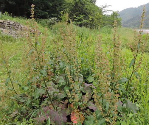 また,マダイオウは,外来種で近縁なエゾノギシギシという植物と雑種を作ることが知られています.エゾノギシギシはちょっと湿ったところであれば,どんどんと進出していく性質があり,マダイオウが生育する場所も例外ではありません.この2種が一緒に生えている場所では,雑種が作られてしまって,純粋なマダイオウが減ってしまったことも知られています.