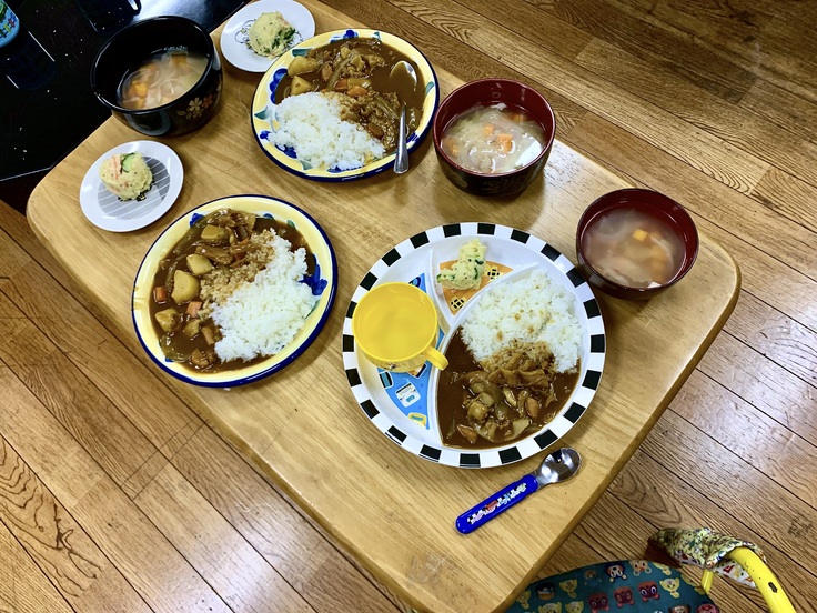 今晩のメニューはカレーライス、ポテトサラダ、ABCスープの3品。