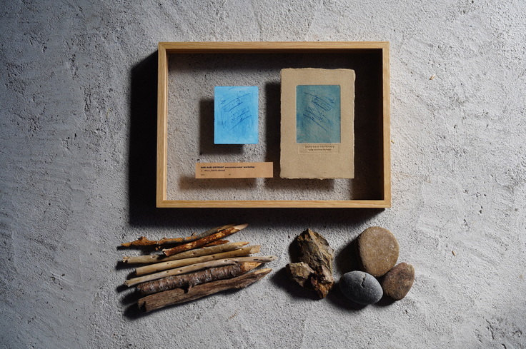 福祉施設でつくられた手漉き(てすき)のアップサイクルペーパーに、版画独特の滲みや濃淡が魅力のドライポイントという技法で刷り上げます。