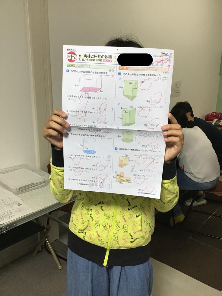 最初は苦手だった算数のテストも毎日のように勉強を続けてテストで良い点数が取れるようになりました!