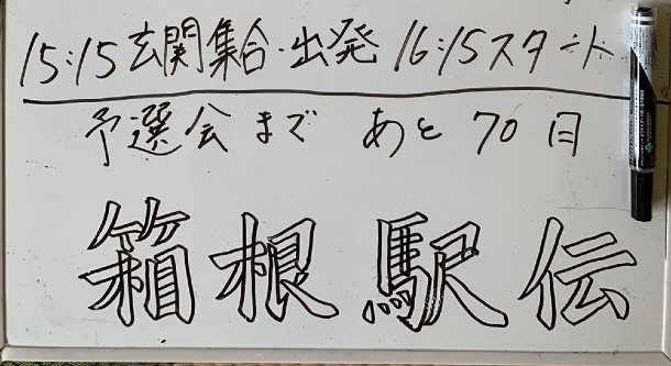 それも、選抜チームではない白河甲子高原の合宿メンバーが、練習ボードに「箱根駅伝予選会までのカウントダウン」を書き込んでいたのです。