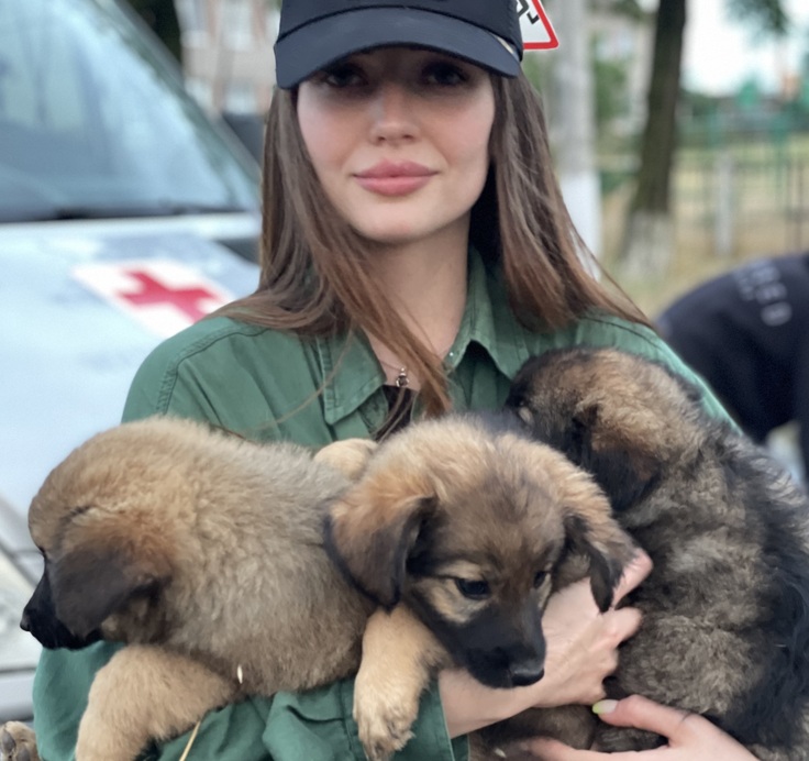 (ヘルソンで子犬を救うイーラさん。イーラさんも戦争前はごく普通の犬猫好きのボランティアさんでした)