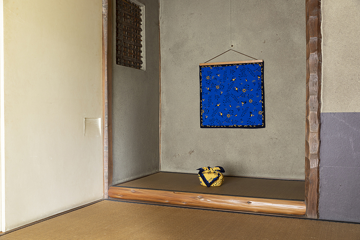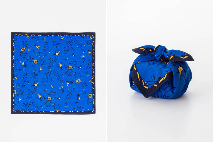 カラーは落ち着いたブルーをベースとした配色で、この風呂敷を日常で使用することで、少しでも心が穏やかになるようなデザインを心掛けました。