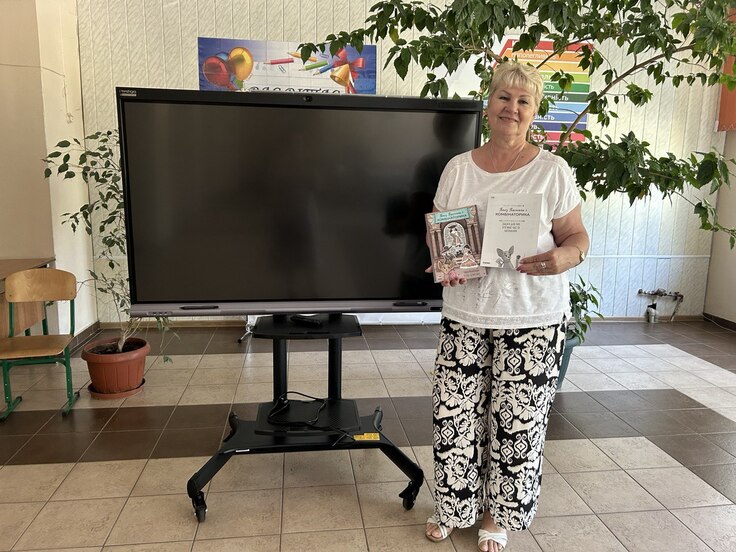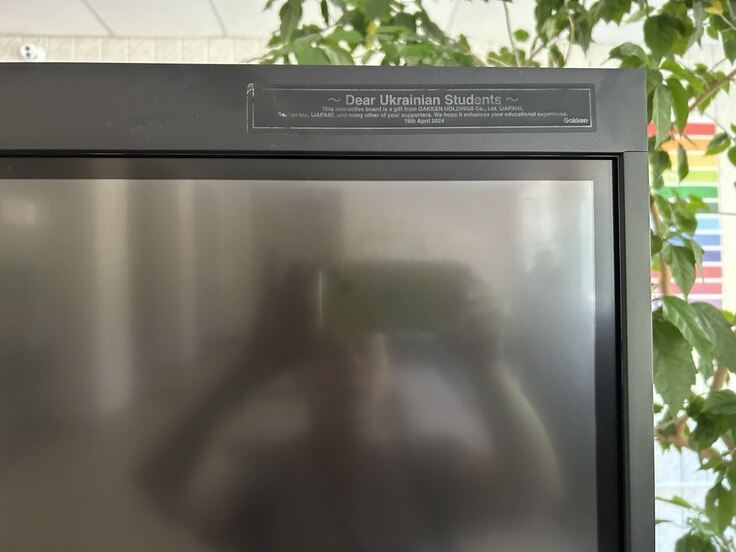 ガンナ先生から、「支援品の電子黒板を授業でも使い始めました」とメッセージが届きました。