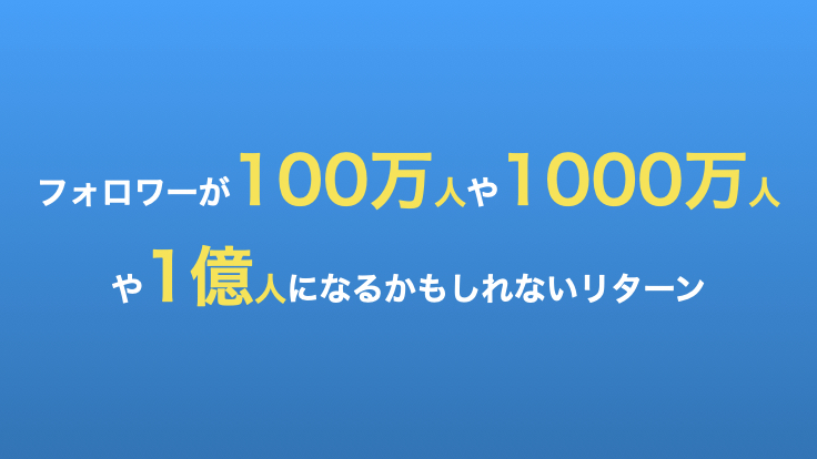 ※フォロワーが100万人や1000万人や1億人になるかもしれないリターンもあります