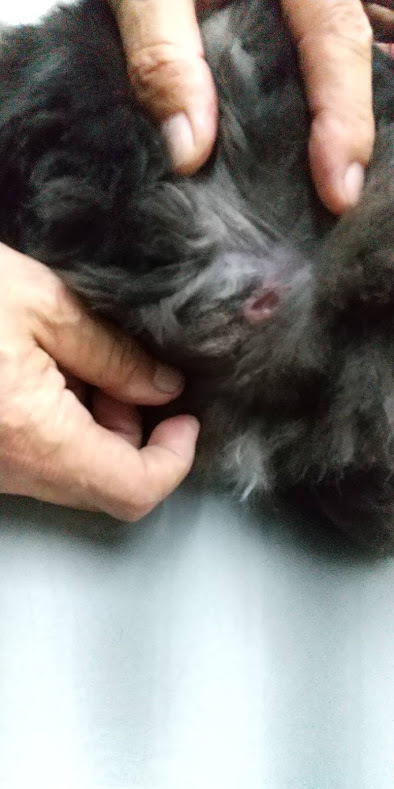 先日、しっぽの横あたり、人間だと足のつけ根辺りかな